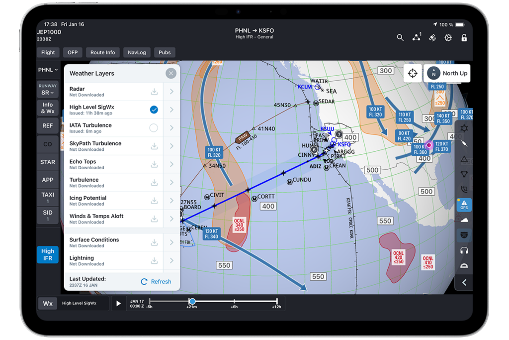 The new high-altitude significant weather layer helps improve high-altitude awareness and decision making.